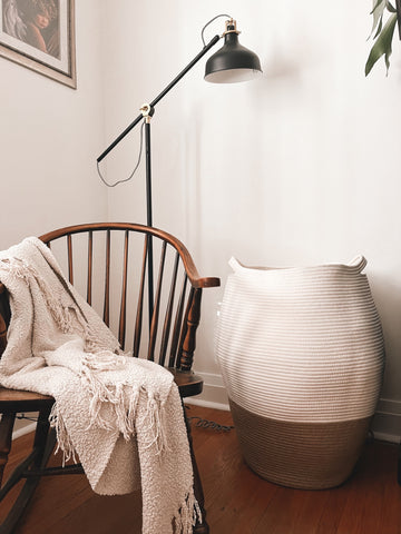 Happy Fall y’all! I thought I’d take a minute to chat about my new baskets from #TheGoodPick ! I’m loving them! I had wrote here, about my first one and have gotten 3 more since! These multi use baskets are a great storage solution for so many things. I’m really loving them as laundry hampers as they allow me to carry them with one hand! The newest one, the Large Camel Laundry basket, is the coolest shape! I’m using it in the spare bedroom right now… to store all the throw pillows and blanket I use to make the bed… when my guests take them off the bed!