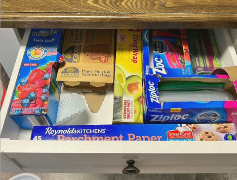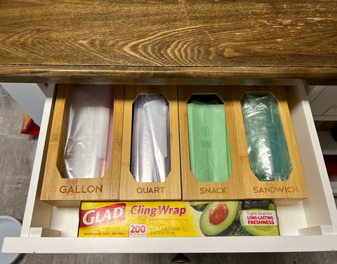 There is one drawer in my kitchen that absolutely drives me bonkers - it is the baggie storage drawer. The boxes never seem to fit in right and they get torn, blocking the drawer from opening fully. My kids are in there every day getting bags for snacks/lunches and it just turns chaotic very quickly. (BTW - I tried reusable bags and they never make it home, so they aren’t an option right now… I did find some awesome compostable plastic bag options that I am starting to switch to be more sustainable.)