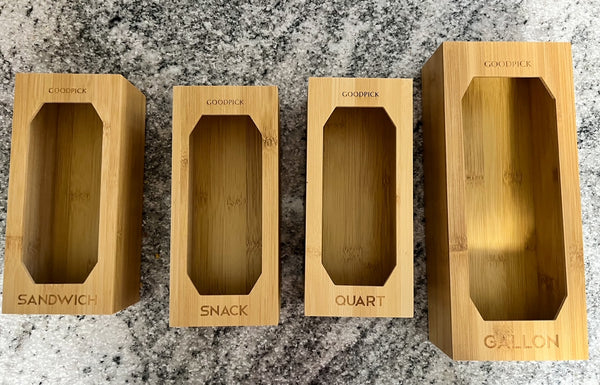 I partnered up with Goodpick, a home goods company that offers a wide variety of baskets and other storage items and they sent me the Bamboo Food Storage Bag Organizer that they carry for me to test out. I was a little nervous at first because online it looks like one large unit - and I wasn’t sure it would fit in the drawer. However, they are four individual boxes, which is perfect because that means you can rearrange them or just use the sizes you need. This also means you can pull them out of the drawer like a regular box if you need to have them more accessible (like if you’re doing meal prep).